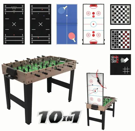 New price low. Walmart has the RealPlay Tzumi 10-in-1 Multi Game Table for Arcade Games for $80 with free shipping. Offers foosball, archery, ping pong (not regulation size), slide hockey, chess, checkers, tic tac toe, cards, bowling, and shuffleboard.