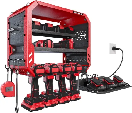 Amazon has the 3-Tier Spampur Wall-Mount Power Tool Organizer w/ Charging Station (Red) for $30 with free shipping on $35+ or with Prime.